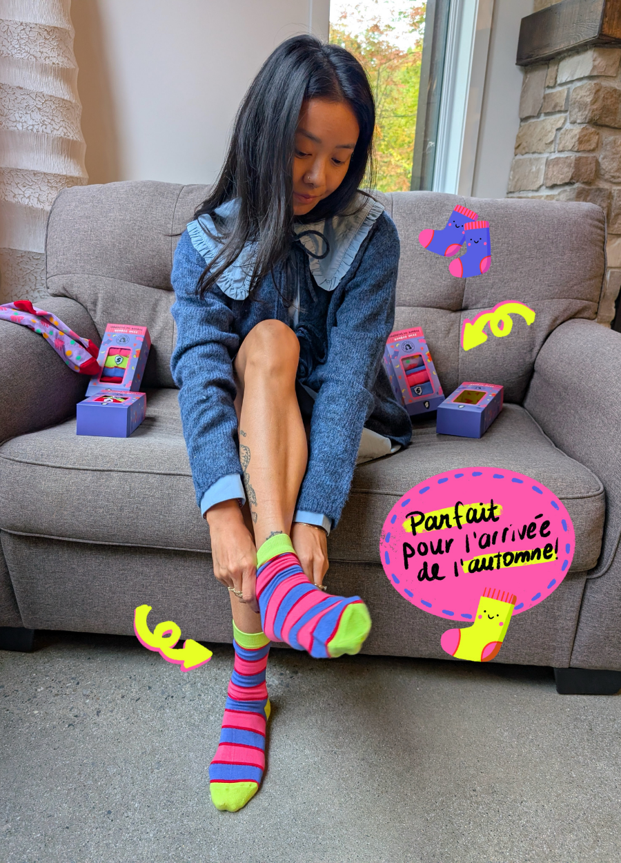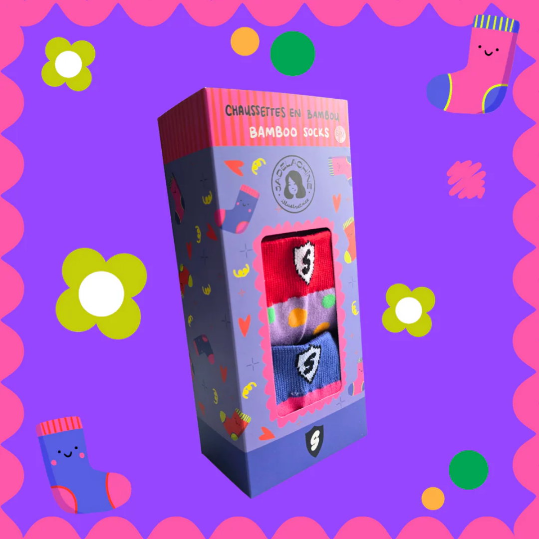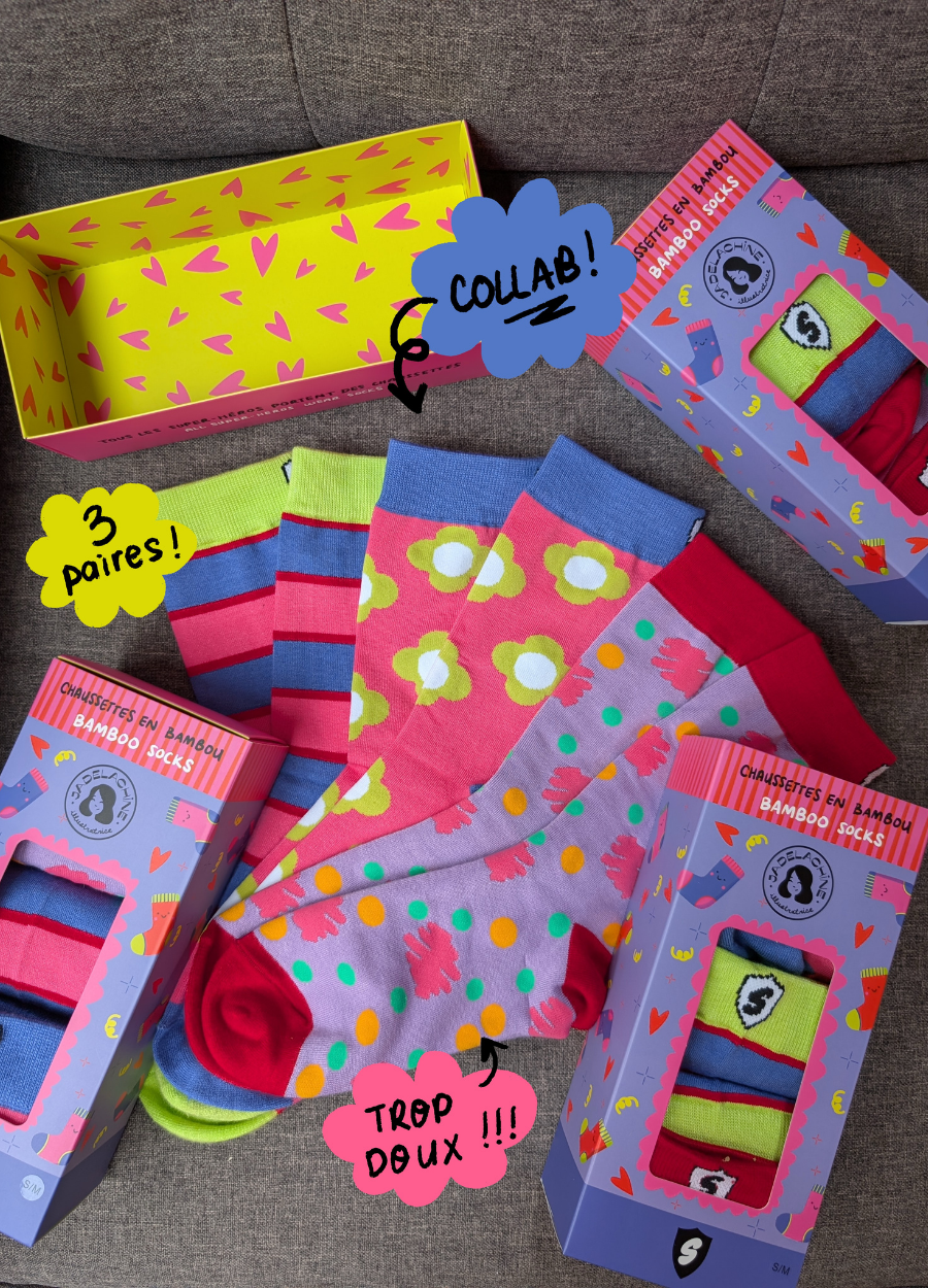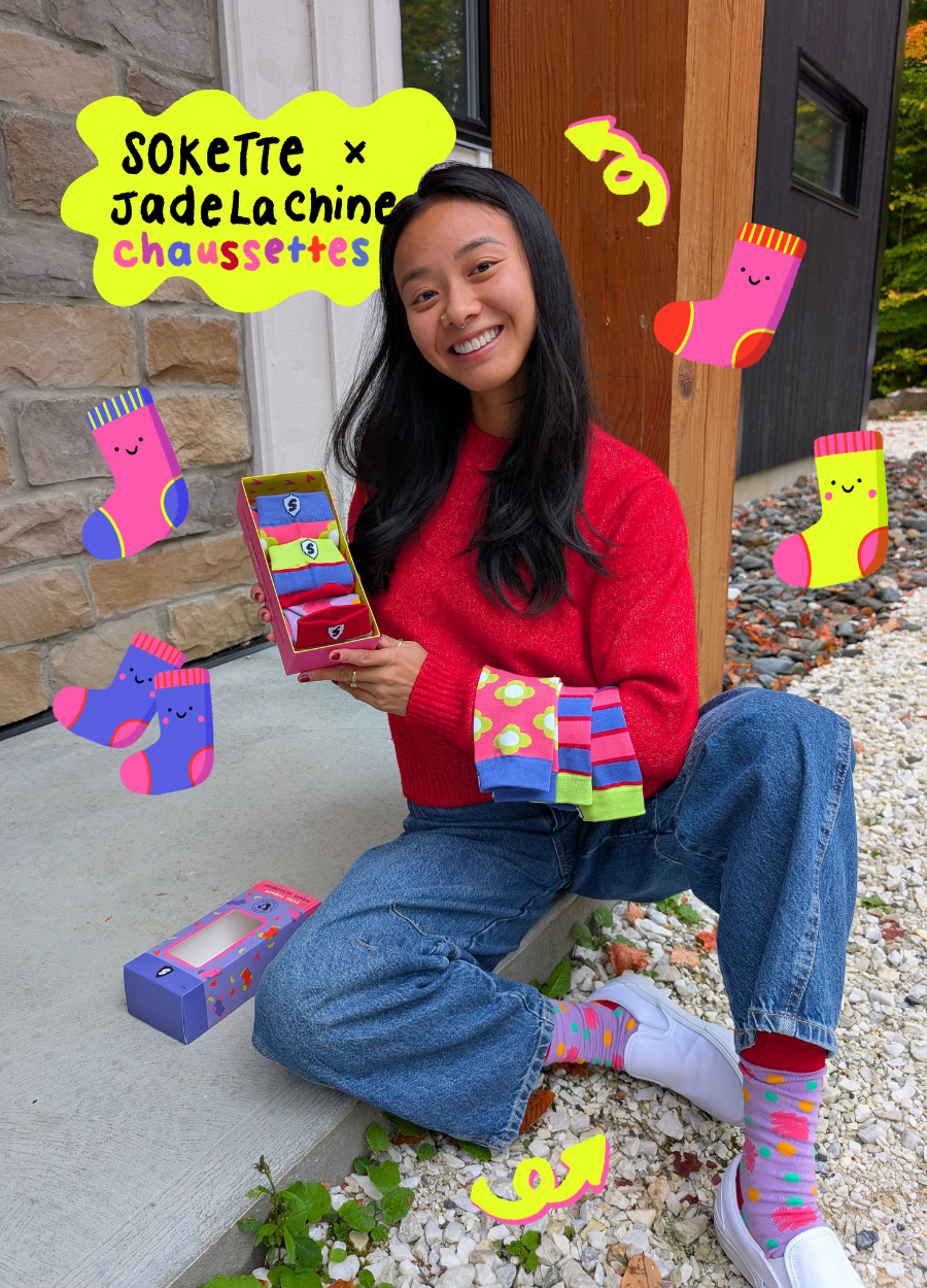 J’ai créé La Boîte à Jade en collaboration avec mes amis de Sokette parce que je voulais partager un petit bout de mon univers avec toi. À l’intérieur, tu vas découvrir trois paires de chaussettes en bambou aux motifs que j’ai imaginés spécialement pour cette édition limitée.
