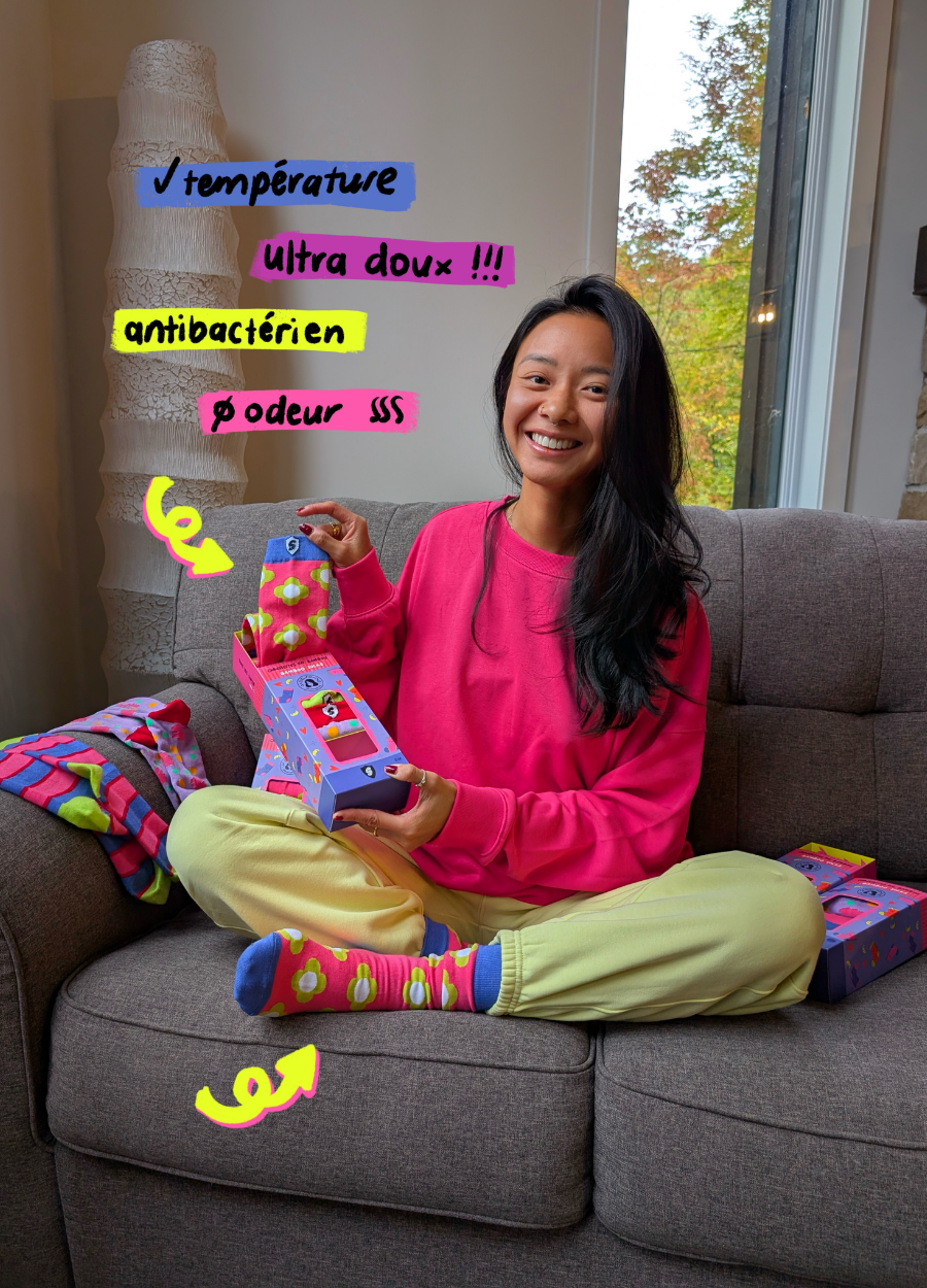 Parce que je veux que tu sois bien, tout simplement. Ces bas sont ultra doux, ils respirent, ils préviennent les odeurs (bye bye les p’tits pieds mouillés après une longue journée 👋) et en plus, ils sont faits d’une matière écoresponsable.