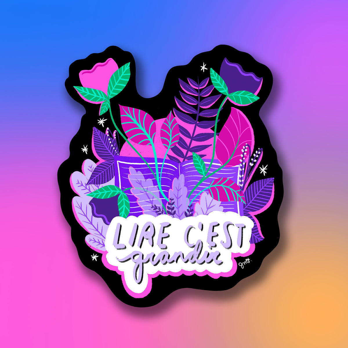 Sticker illustré par Jade Lachine, imprimé sur un matériau waterproof durable.