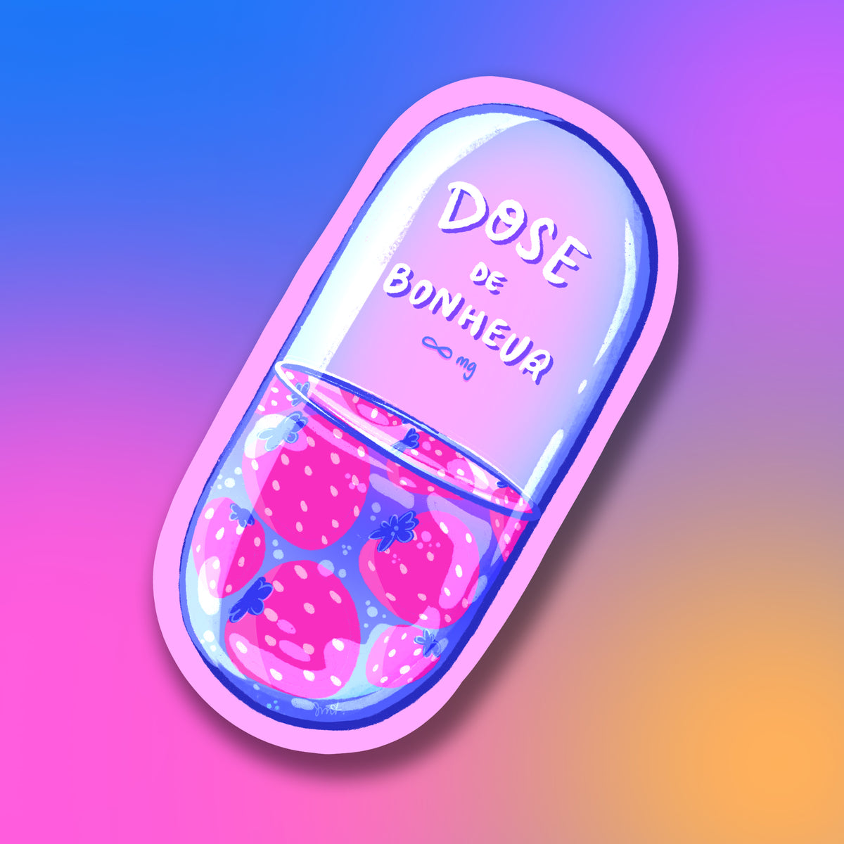 Sticker illustré par Jade Lachine, imprimé sur un matériau waterproof durable.